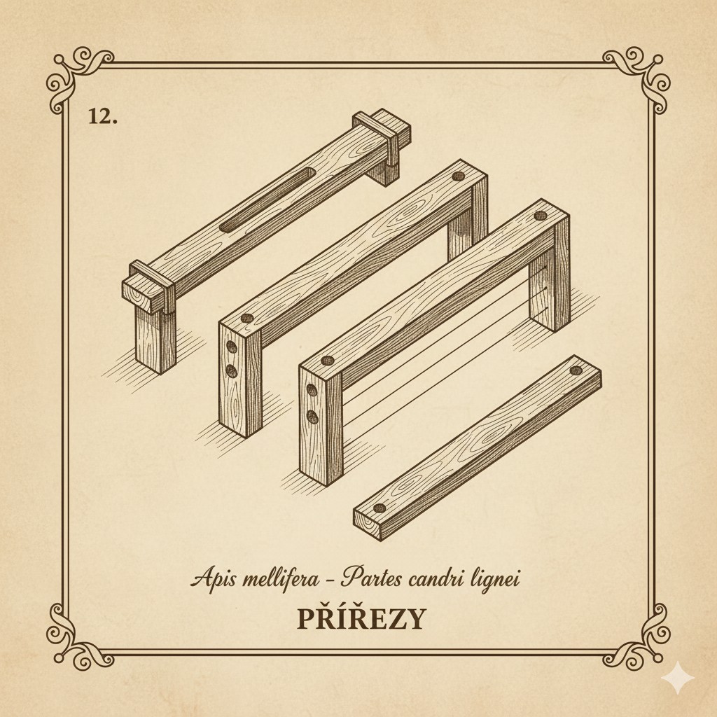 Dřevěné části, ze kterých se skládají rámečky. Včelař je musí sbít dohromady, aby vytvořil kompletní rámek pro stavbu plástu.